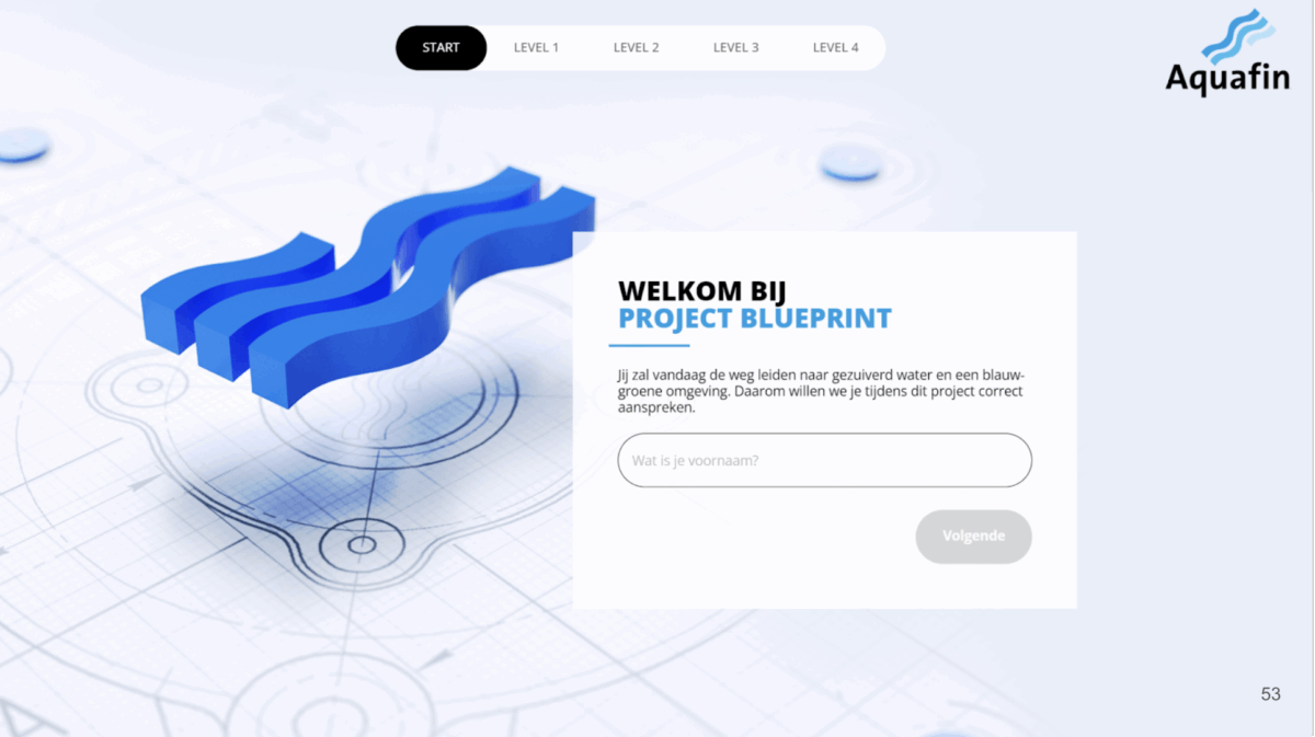 Ons antwoord? Project Blueprint: een spel waarbij kandidaten in de huid kruipen van Aquafin projectmanagers. Over verschillende levels konden zij reële uitdagingen aangaan. En dat terwijl ze rekening hielden met bewoners, gemeenten en interne stakeholders.